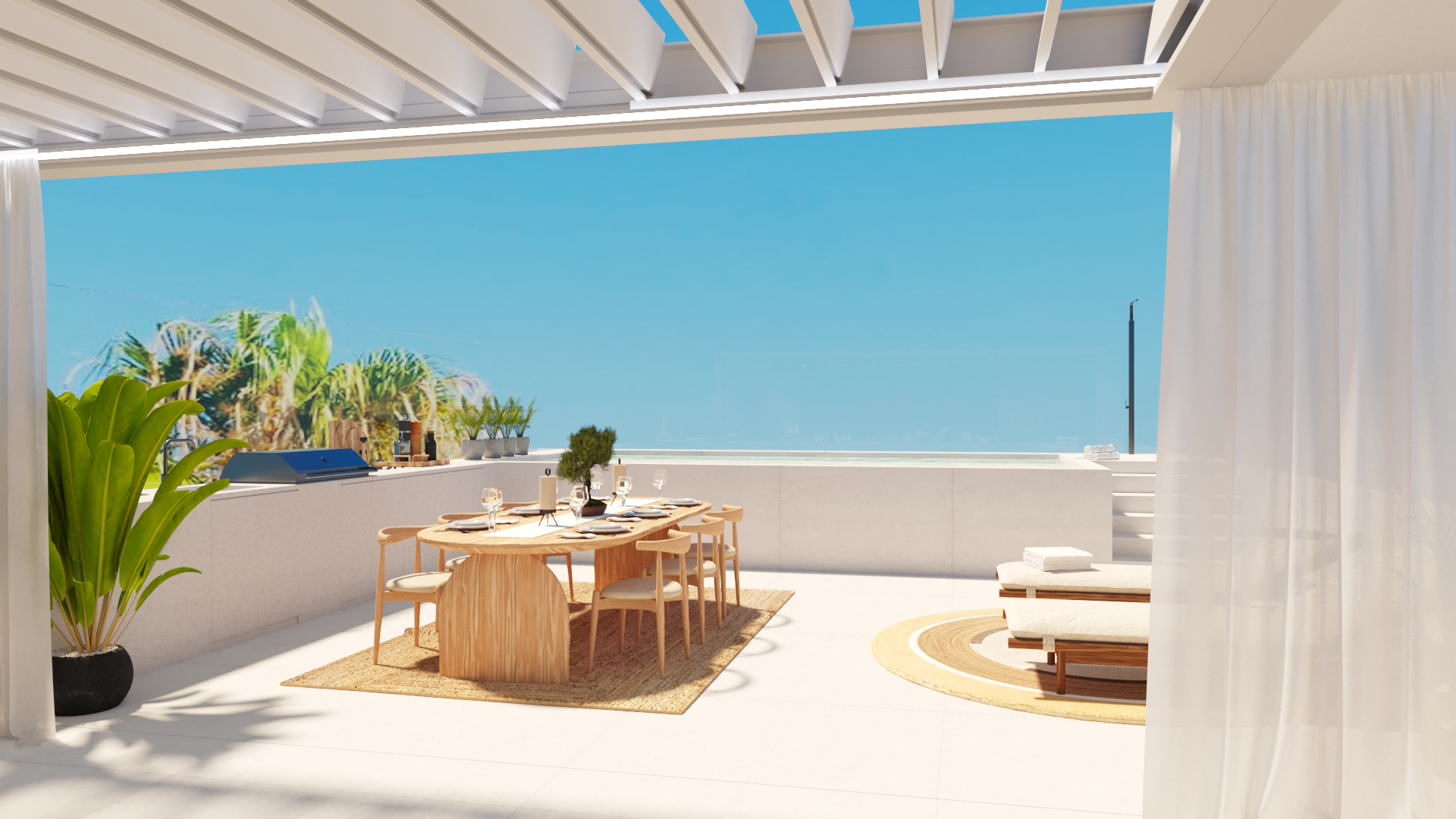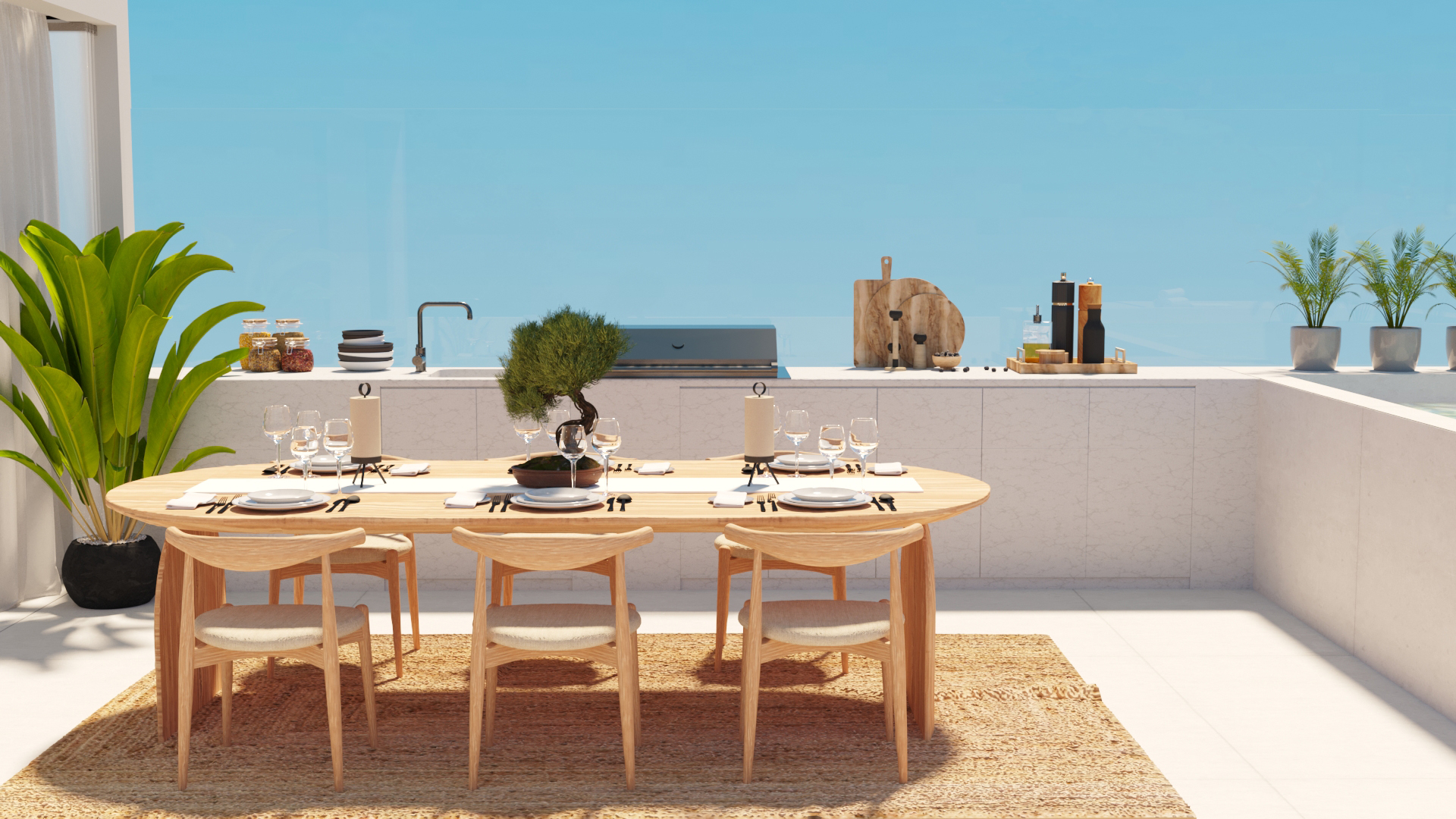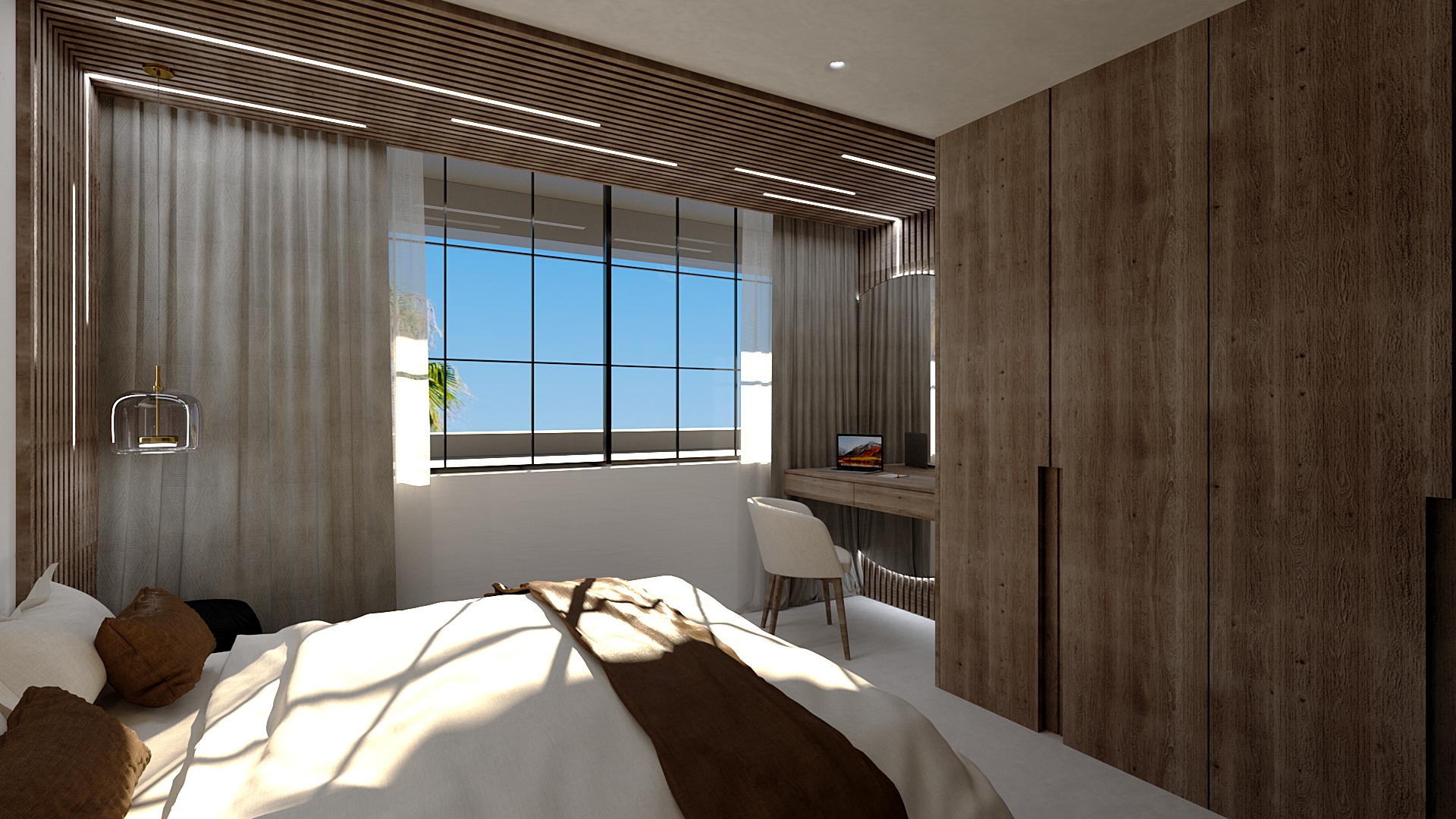 Clean lines and modern finishes are harmonized with organic textures and natural imperfections, creating a space that feels both refined and inviting. Soft neutral tones, raw materials, and thoughtful lighting enhance the connection to the coastal surroundings. The result is a serene, stylish home that embraces simplicity, warmth, and timeless elegance.